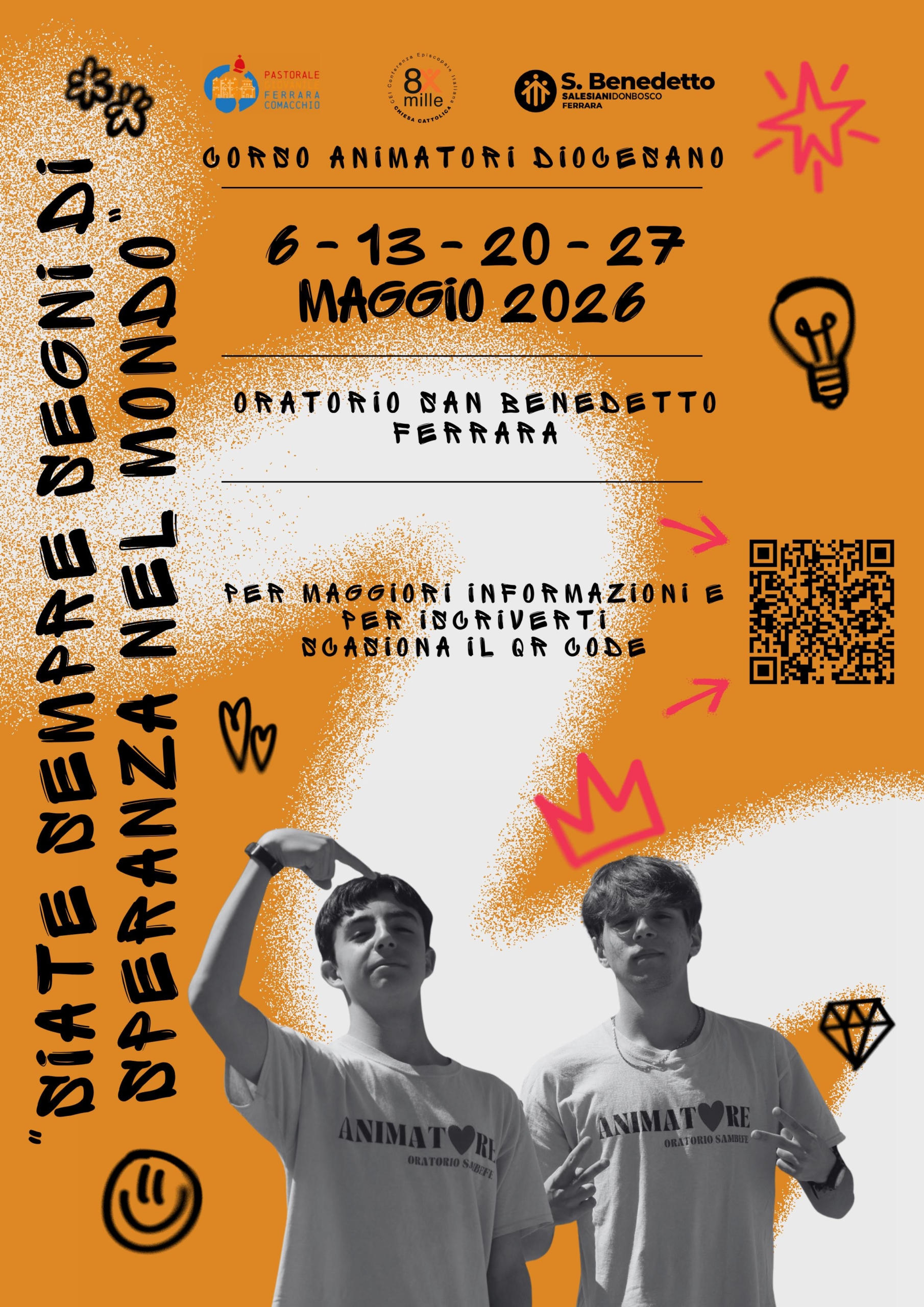 Carissimi, con piacere desideriamo comunicarvi che anche per quest’anno ritorna la proposta del Corso Animatori Diocesano 2026, rivolta ad adolescenti e giovani che desiderano mettersi al servizio durante il periodo estivo nelle Parrocchie.